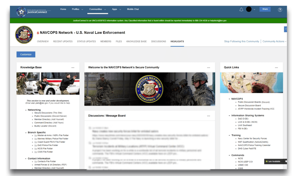 An important and fun part of our community is discussions! Join our Facebook Group to engage in a variety of public discussions. Find old shipmates, mentor others, discuss topics, etc. Facebook Group is brand new as of June of 2025. For law enforcement sensitive/confidential discussions please use our secure site (FBI JusticeConnect COI).